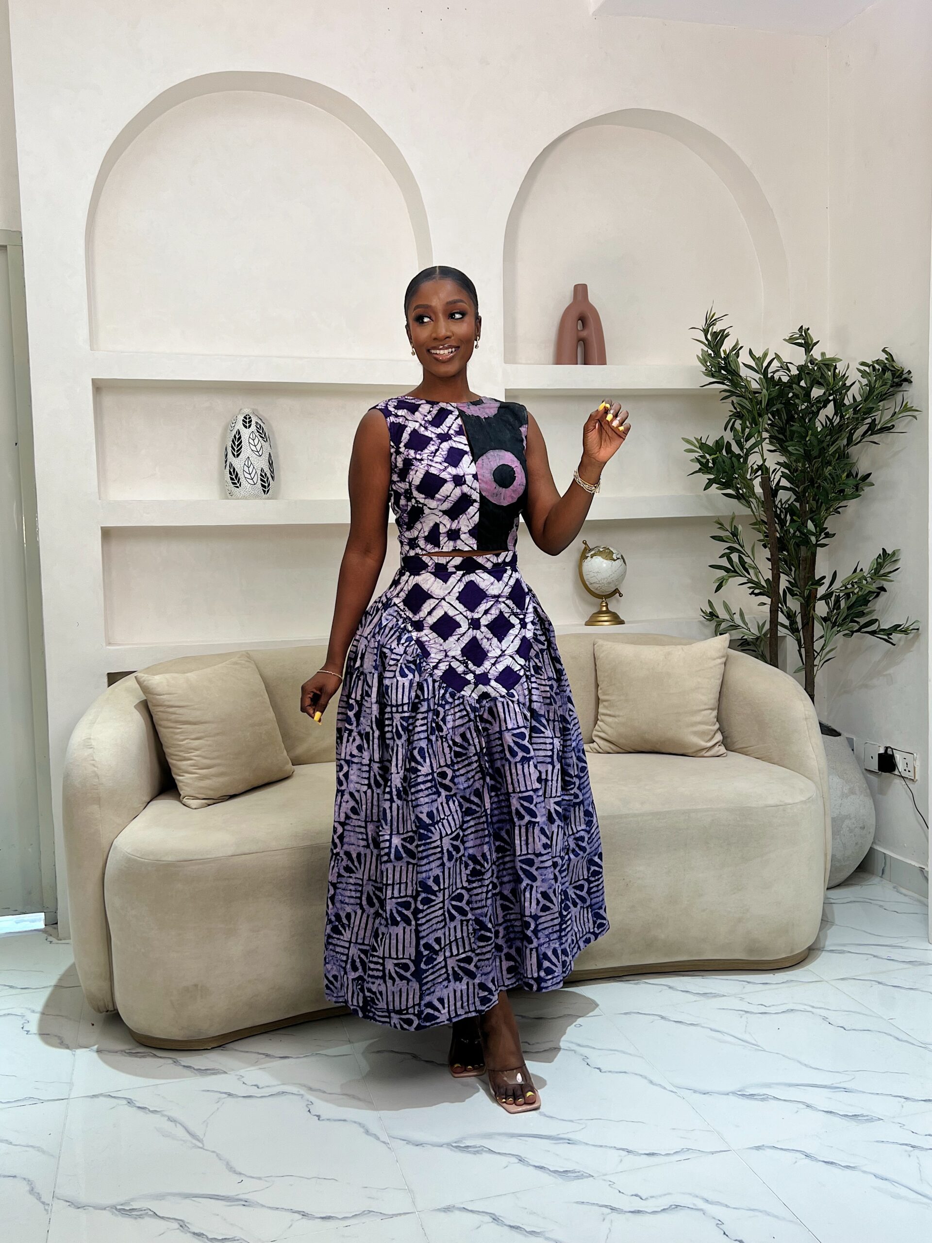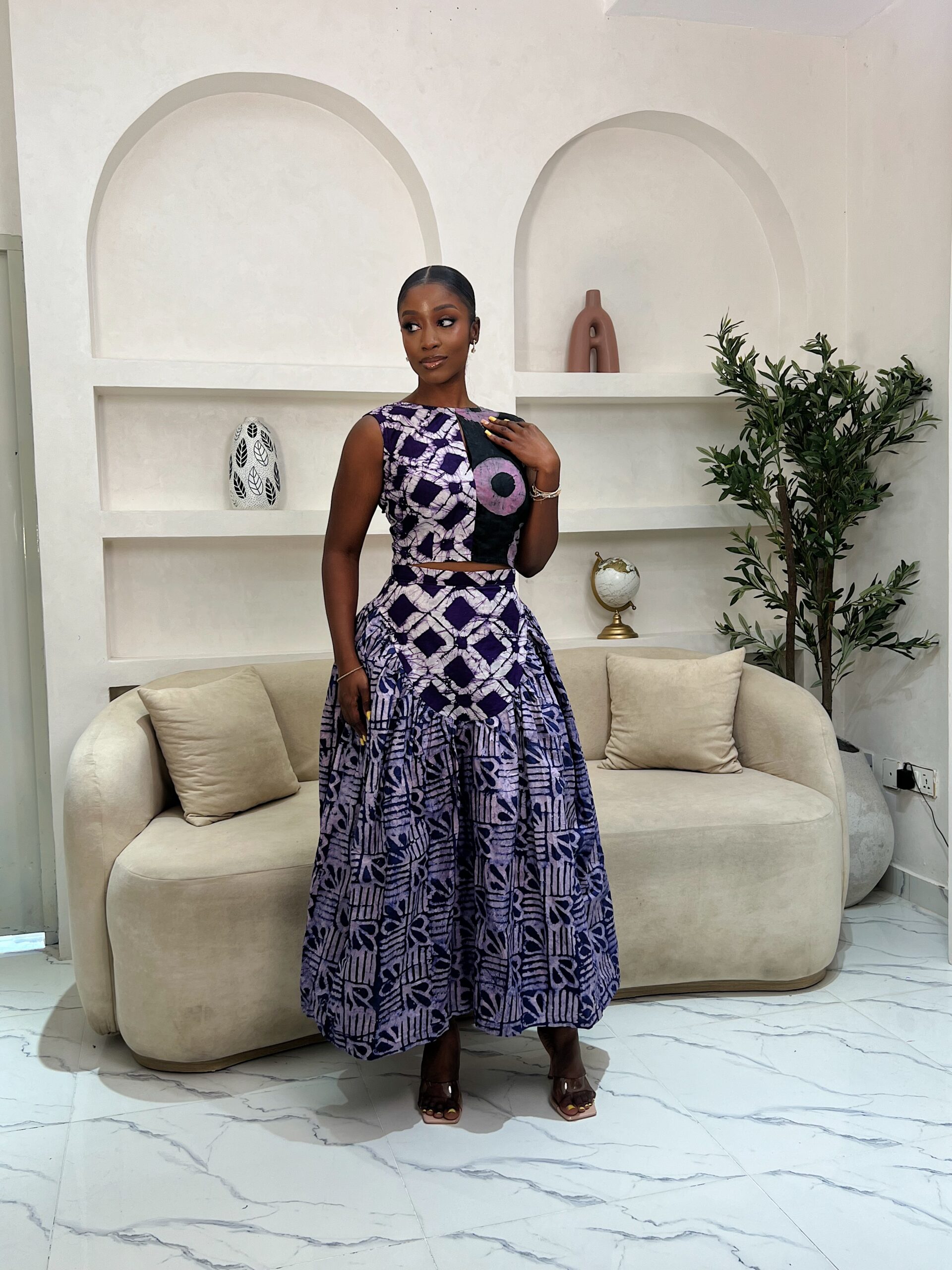 An Adire African print skirt and top set