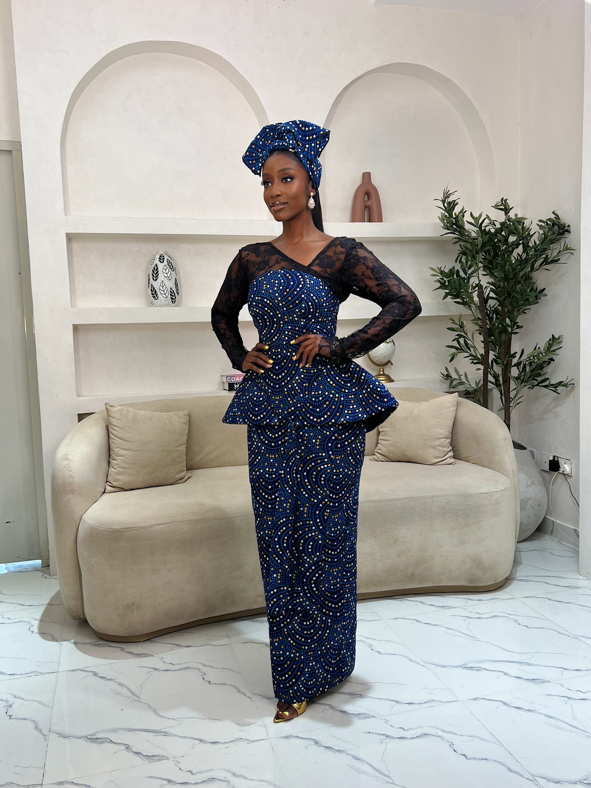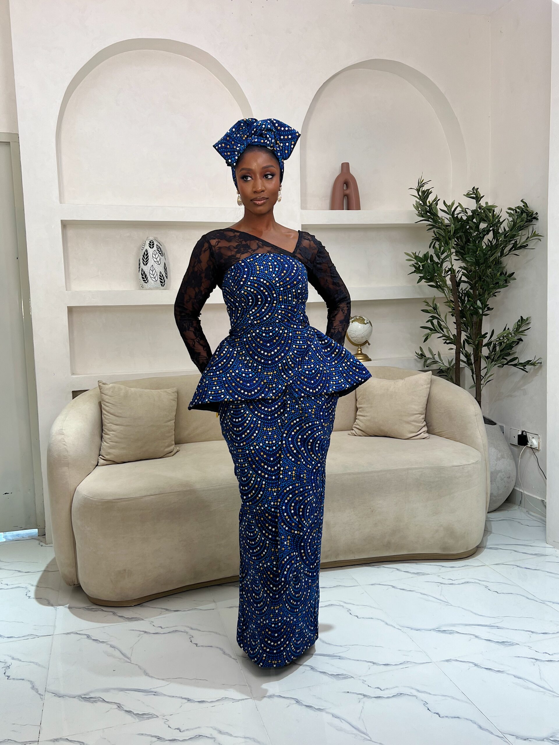 - A Luxury ankara print dress. Lace details and structured peplum detail.