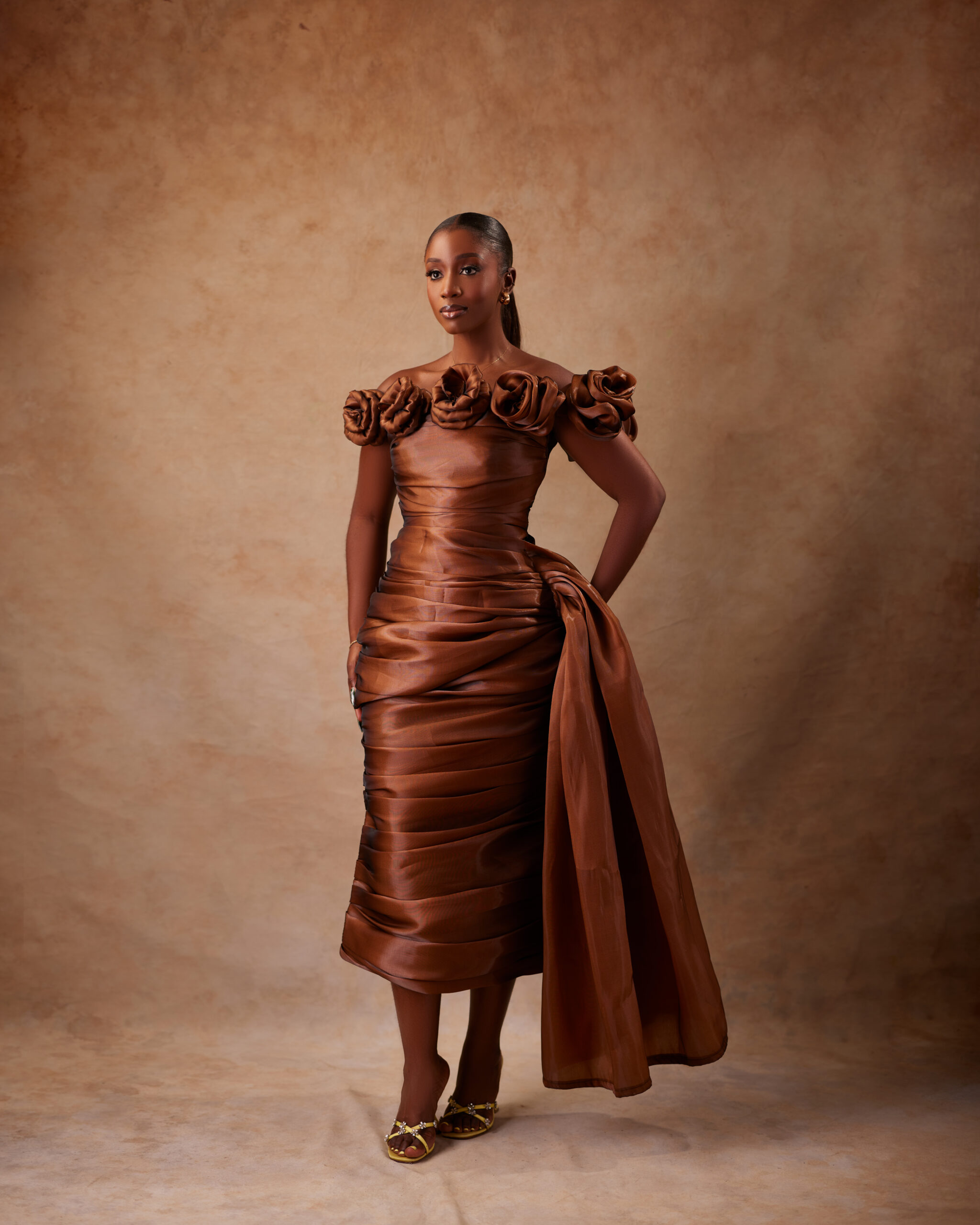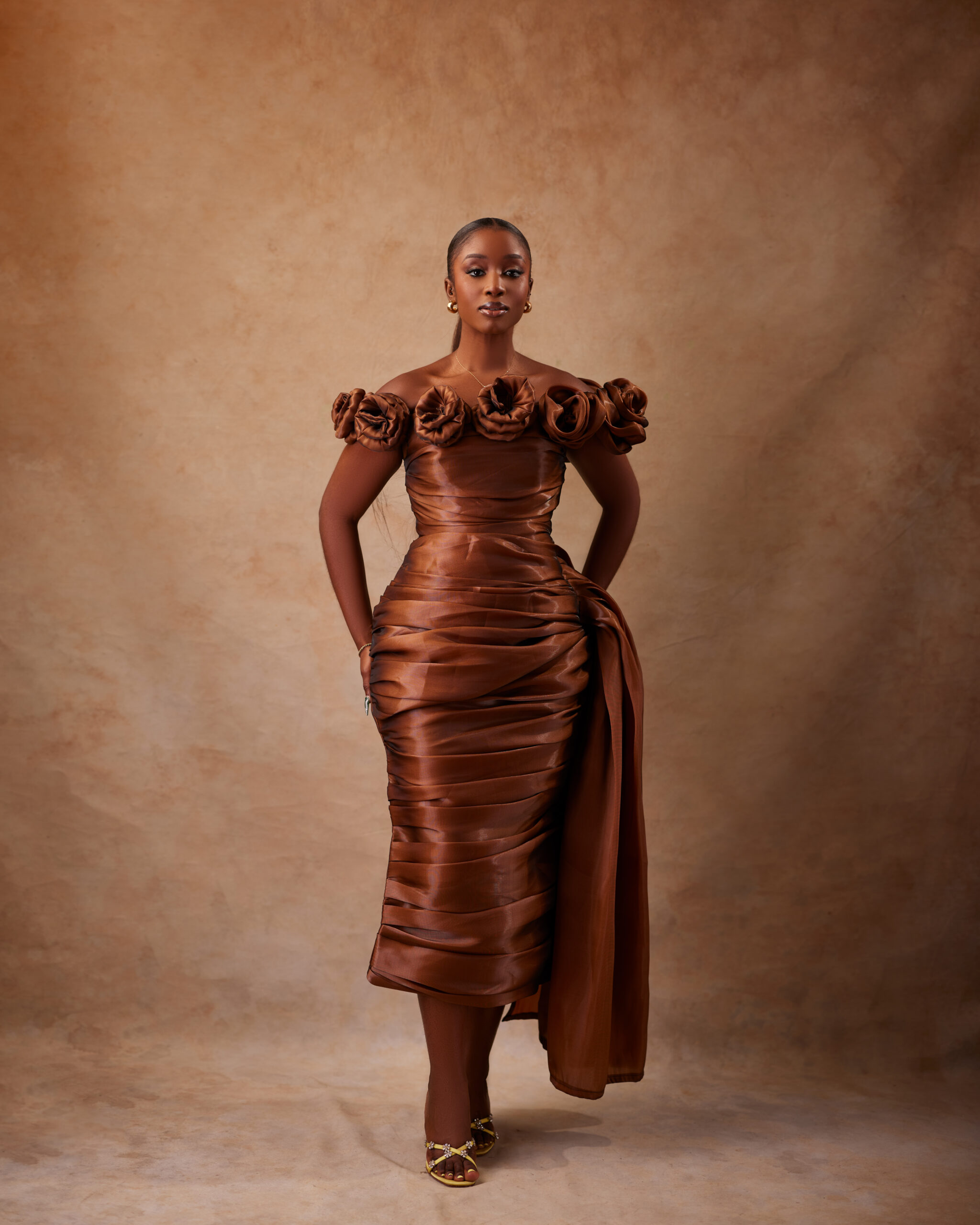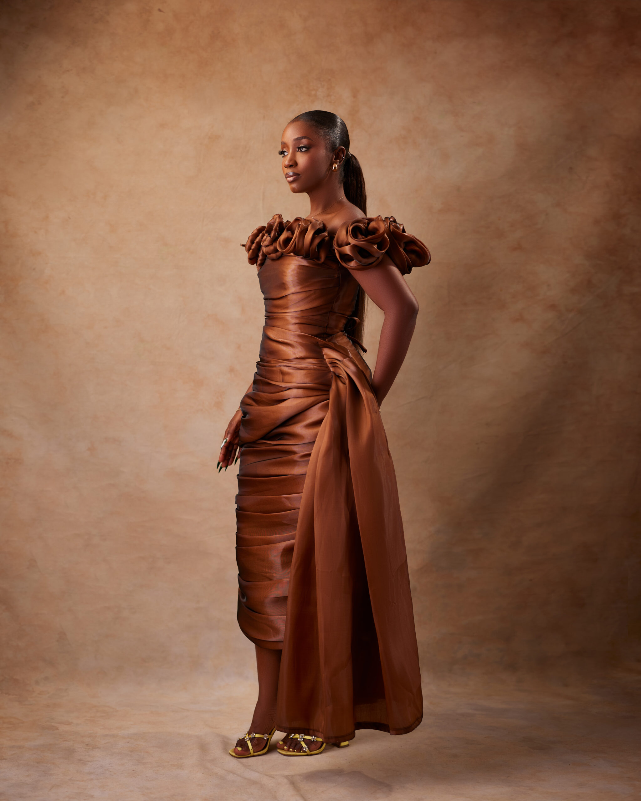 A luxurious liquid organza structured dress. Perfect for the holiday season.