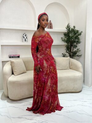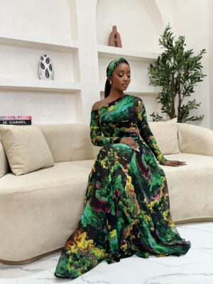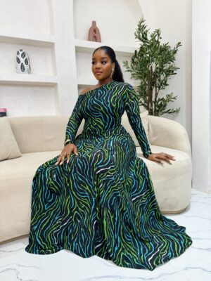 - An Adire maxi dress. 65 inches long.