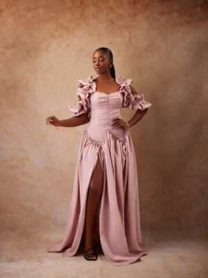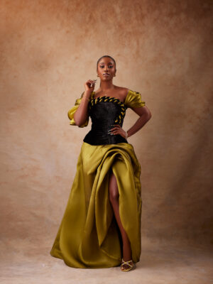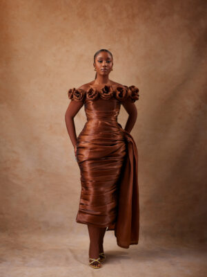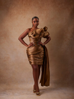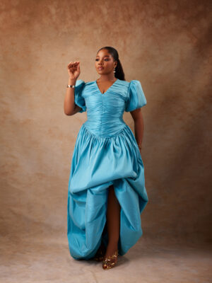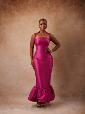 A luxurious liquid organza structured dress. Perfect for the holiday season.