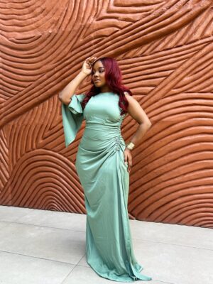 A maxi mesh dress. Comes with an inner dress. 65 inches long.